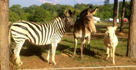Zoe our Zebra, Zassie our Zedonk and Jack Rabbit, our mini donkey