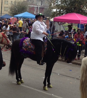 Here he's riding in a Mardi Gras parade in New Orleans.